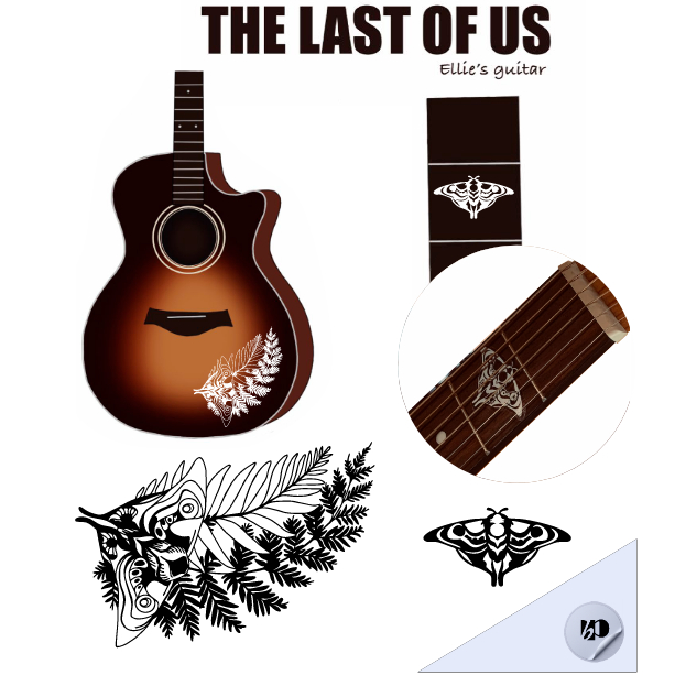 KIT 2 adesivos violão preto the last of us ellie tattoo mariposa vagalume firefly moth