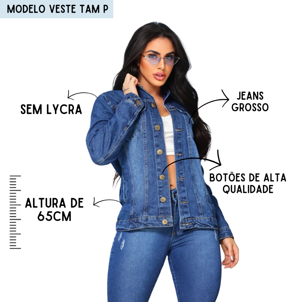Jaqueta Jeans Feminina Tradicional Lisa Casaco Manga Longa