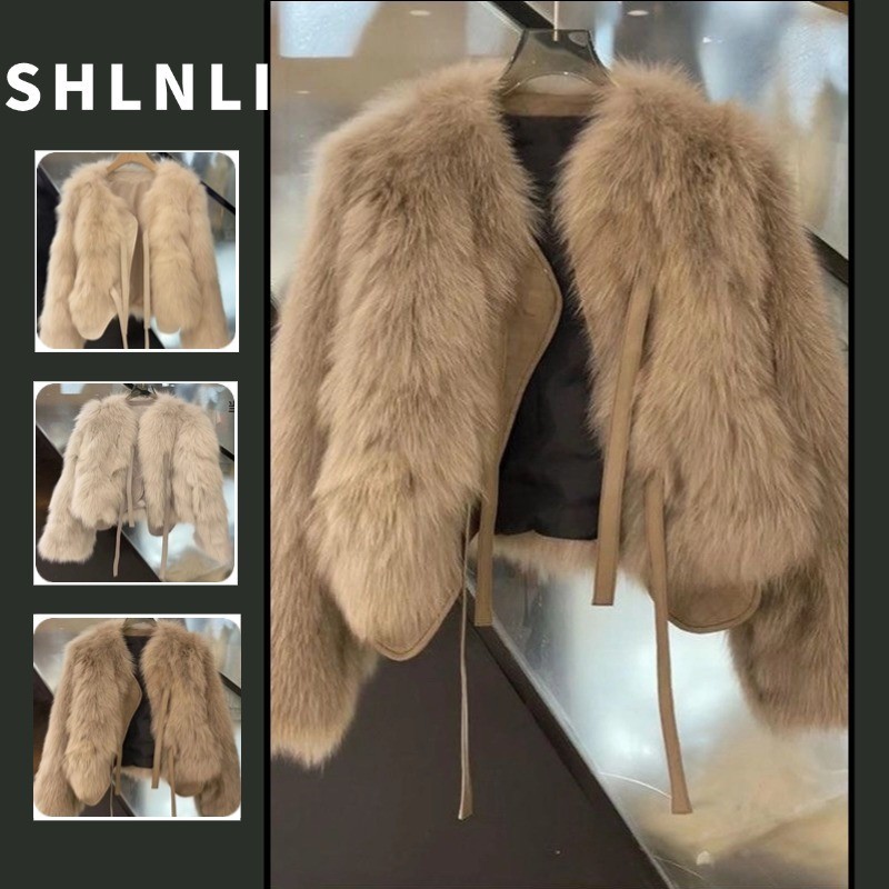 Casaco De Pele Curta Feminino Para Outono Inverno Versátil Renda Cor Sólida Jaqueta De Manga Comprida