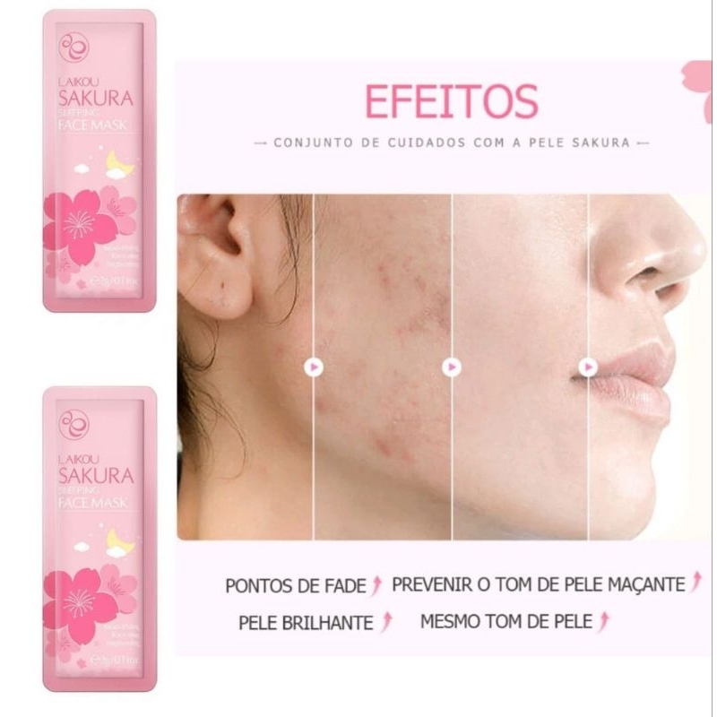 Kit 4 tens LAIKOU Máscara Noturna Antiacne com Extrato de Sakura / Ilumina/ Reduz Rugas / Hidrata /Skincare detox