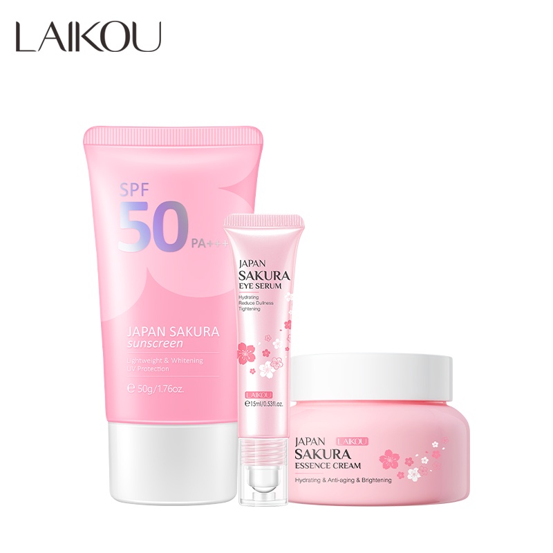 LAIKOU Sakura SPF50 Protetor Solar Remove Saco De Olhos Soro Hidratante Conjunto De Cuidados Com A Pele 3pcs