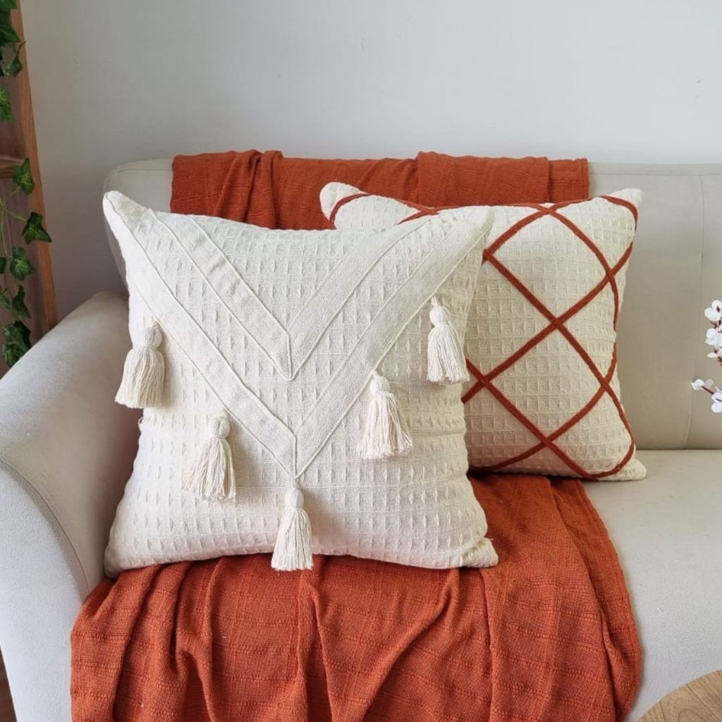 Kit 2 Capas de almofadas Decorativas algodão Pompom Trance Boho Chic Rustica Cru 45x45cm