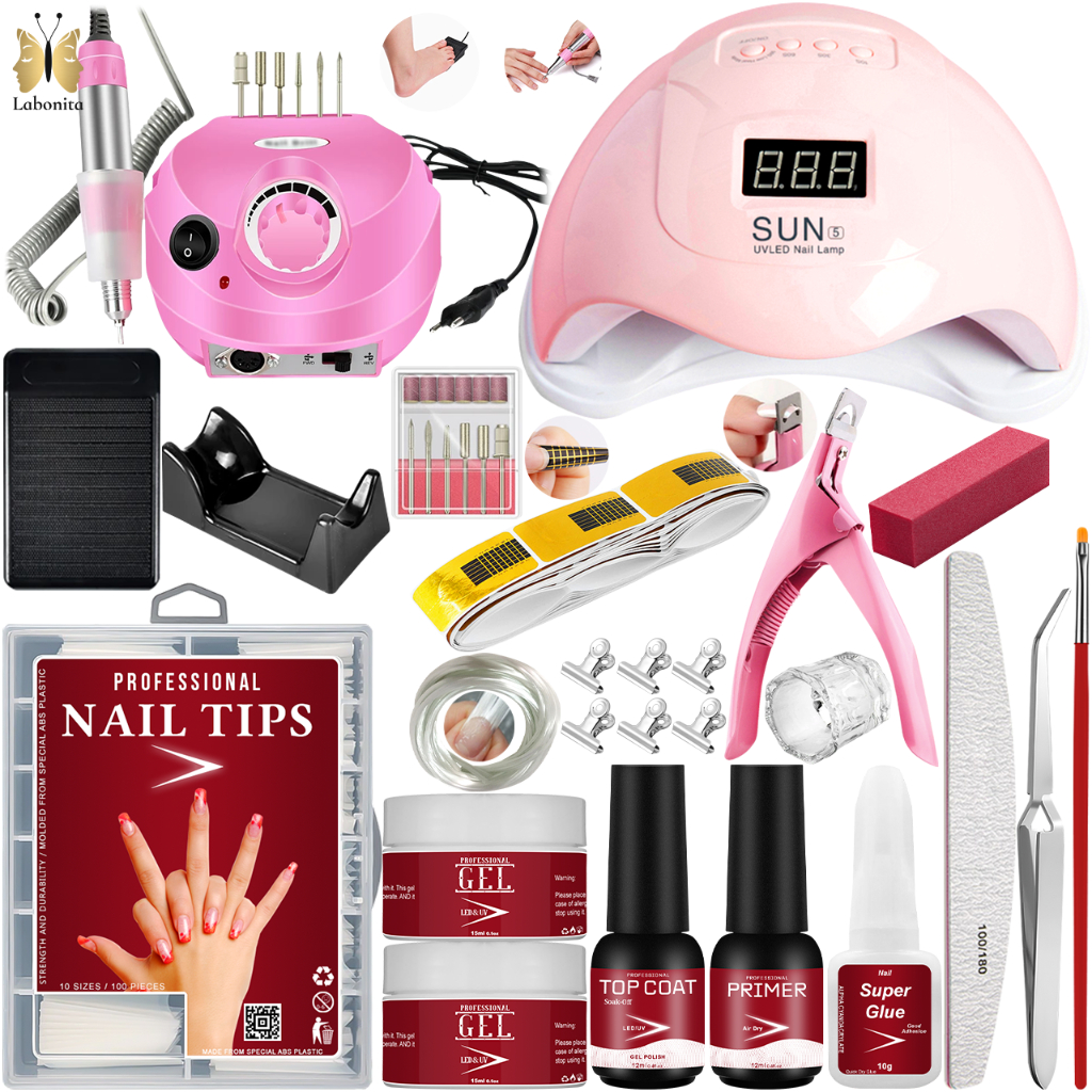 Kit Unha de Gel completo Iniciante Manicure Alongamento Cabine Sun Mini Unhas Polygel Molde F1 Lixa Lixadeira Elétrica
