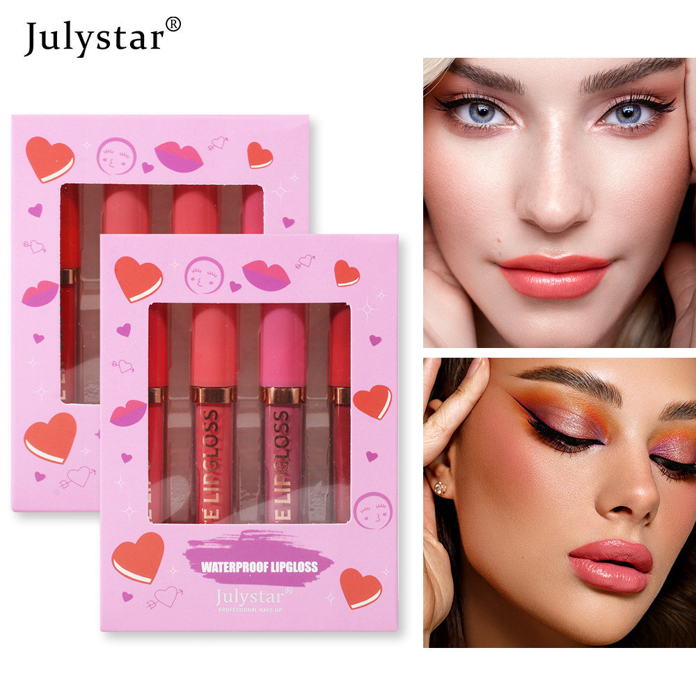 Julystar Cross-border Natural Lasting Matte Lip Glaze Mist Lipstick Não Toca Copo Desbota Conjunto De Brilho Labial Maquiagem Genuína