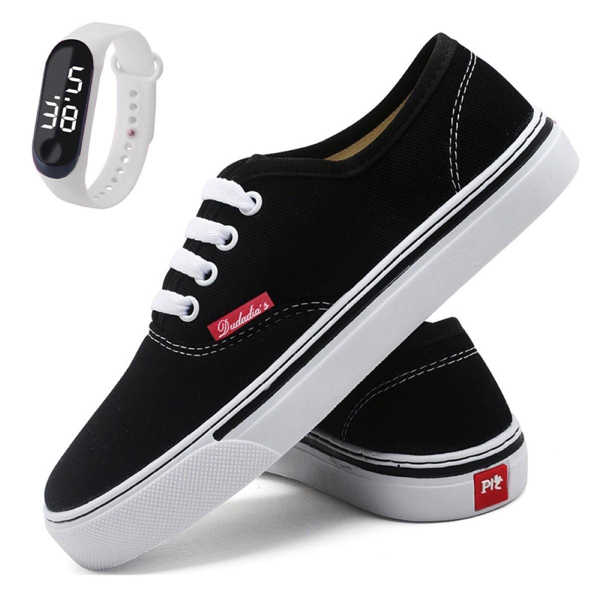 Tenis Polo Cano Baixo Kit Com Relogio Skateboard Casual Feminino