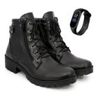 Kit Bota Feminina Coturno Feminino Zíper Lateral Tratorada Casual Preto Salto Baixo Moda + Relogio