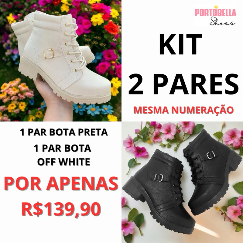 kit 2 pares Bota feminina tendência 2024 outono inverno cano curto - COTURNO FEMININO PRETO - OFF WHITE