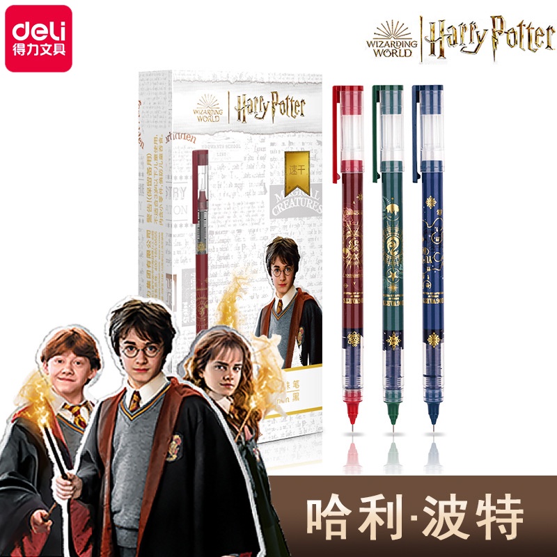 1pcs Deli S1638 Harry Potter Caneta Esferográfica Reta 0,5mm Agulha Completa Preta Pincel De Assinatura De Escritório Para Estudantes