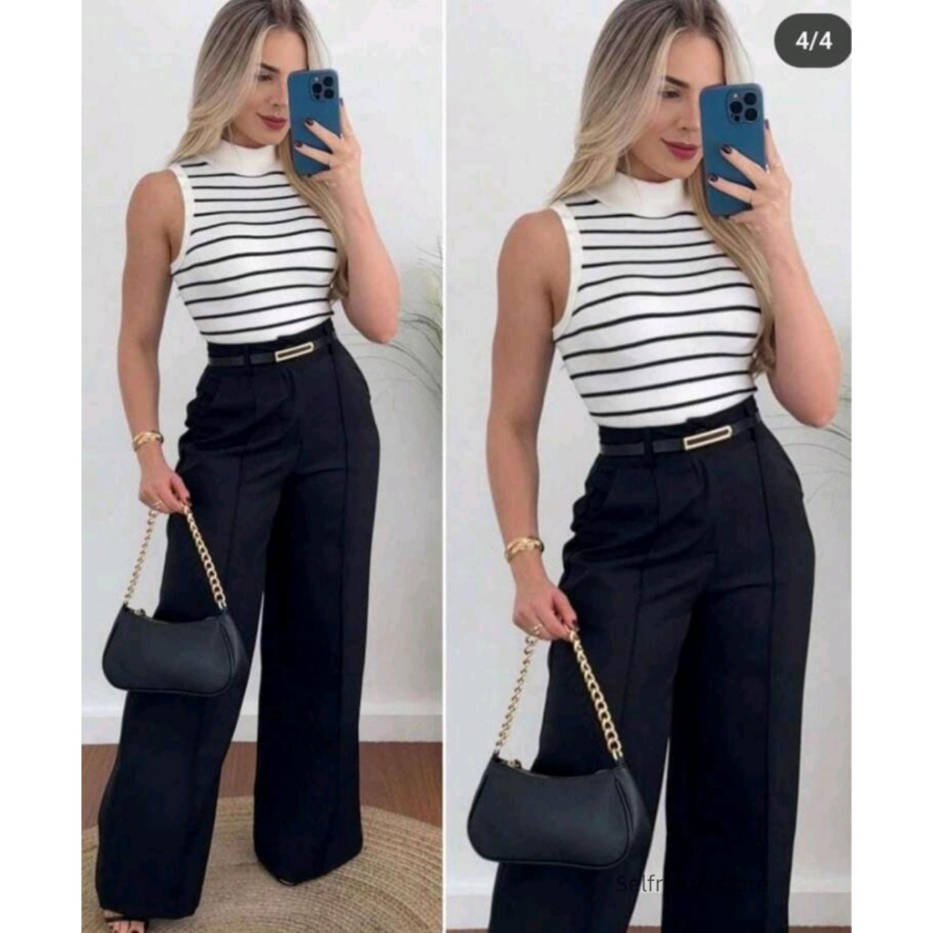 calça feminina alfaiataria pantalona com cinto moda elegante fashion