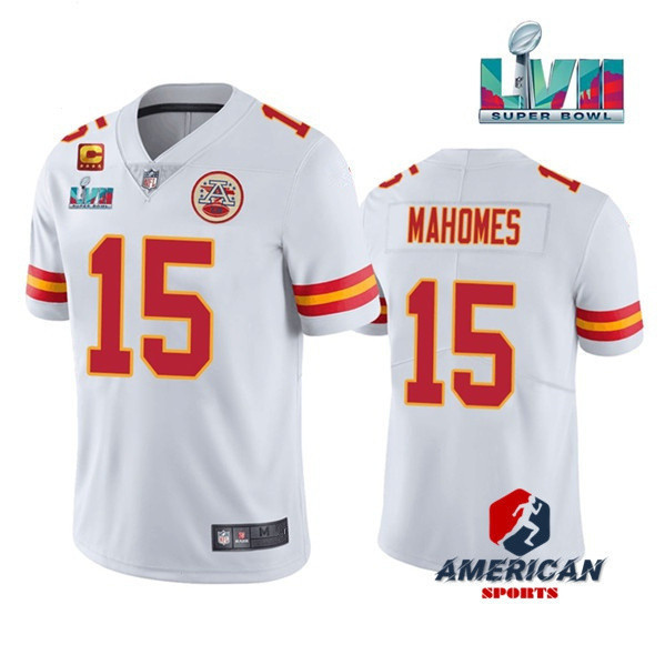 Camiseta Masculina 2023NFL Kansas City Chiefs Patrick Mahomes Branca Super Bowl LVII Limitada Camisa De Futebol Americana Jersey