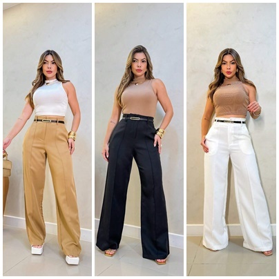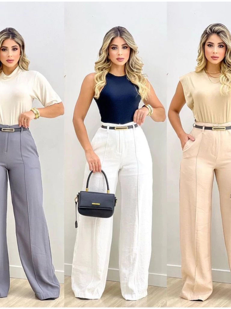 Kit 3 Pantalona Feminina ZARA Cintura Alta Com Cinto Calça Alfaiataria Modelo Elegância Luxo Tendencia Blogueira