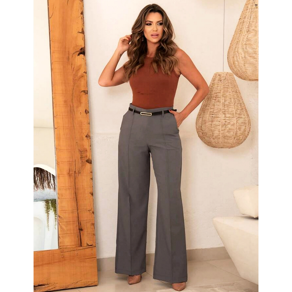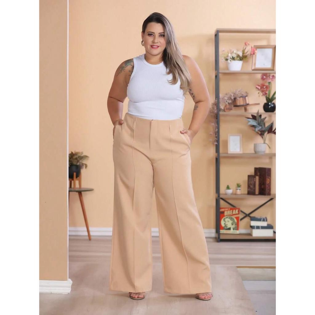 Calça Pantalona PLUS SIZE Alfaiataria Feminina com Cinto Zara Elegancia Social