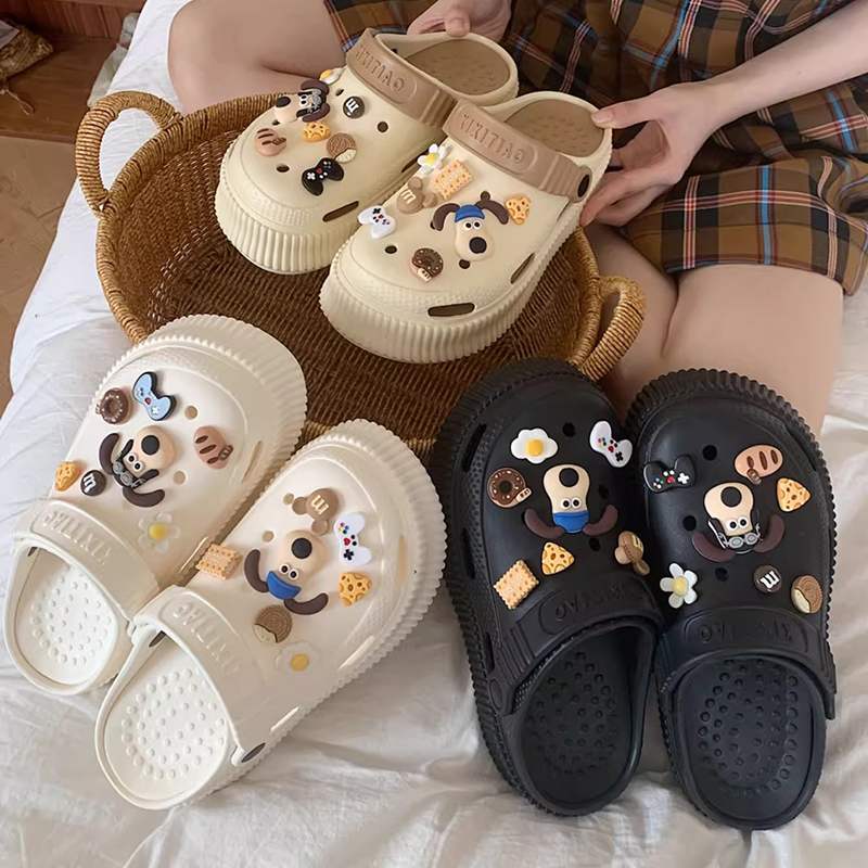 2024 Novo Estilo De Desenho Animado Chinelos De Olhos Grandes Para Cães Fêmeas De Verão Sapatos De Buraco Baotou Grosso