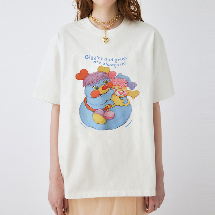Desenho animado Branco Camiseta de manga curta estampada em branco Mulheres 2024 Novo Estilo Algodão Puro Pesado ins Round Neck Loose Top