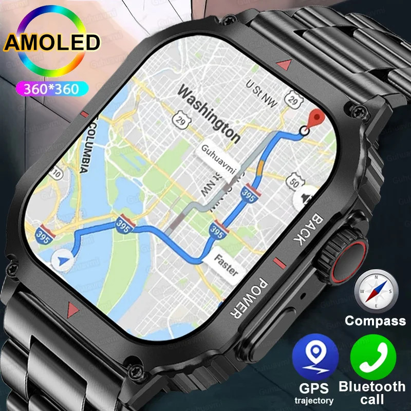 2024 Novo GPS Robusto Militar Smart Watch Men Bluetooth Chamada De Monitoramento Da Saúde AI Esportes De Voz Smartwatch À Prova D'água Freqüência Cardíaca Feminina