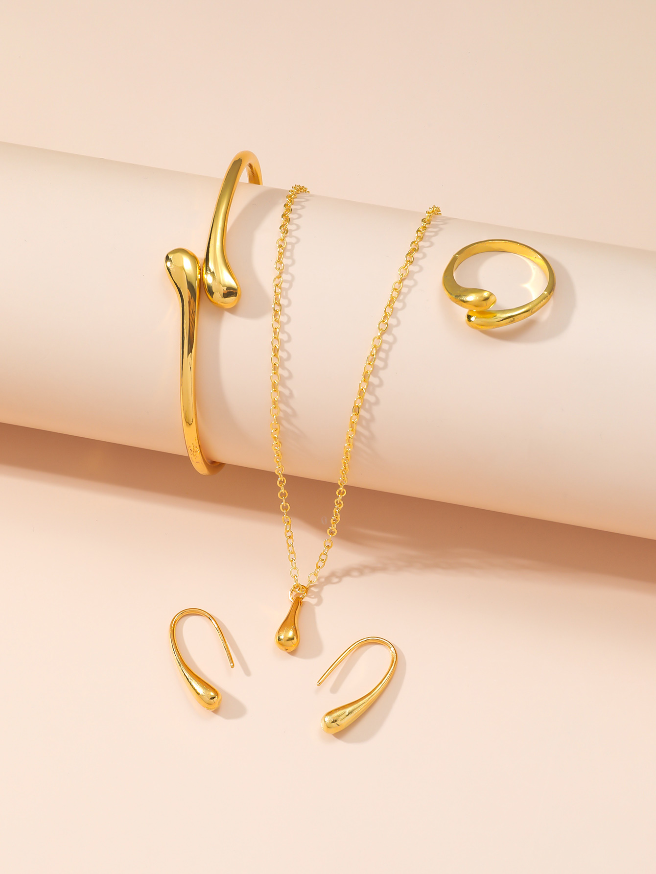 Conjunto de 4 peças / conjuntos de jóias de moda simples com brincos de brincos com anel de gota d'água Pulseira