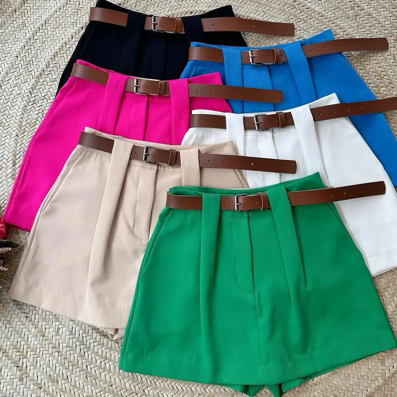 Short Feminino Alfaiataria Social com Cinto cintura alta com bolso tendência Promoção