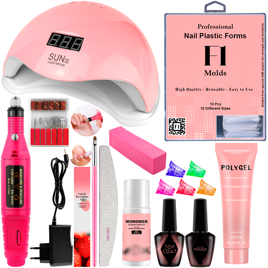 Kit De Unhas Polygel + Lixadeira Caneta + Caneta Oleo Hidratante De Cuticula + Cabine De Unha Estufa Led UV Sun 5 Manicure Profissional OFERTA