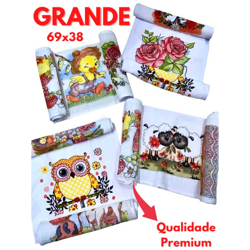 Kit Pano de Prato Grande Legítimo Original Pé De Galinha Premium Estampado Excelente Absorção 100% Algodão