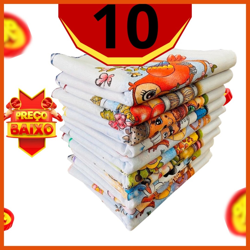 Kit 10 Pano De Prato Cozinha Estampado 100% Algodão com Bainha Atacado de Fabrica 10 unidades