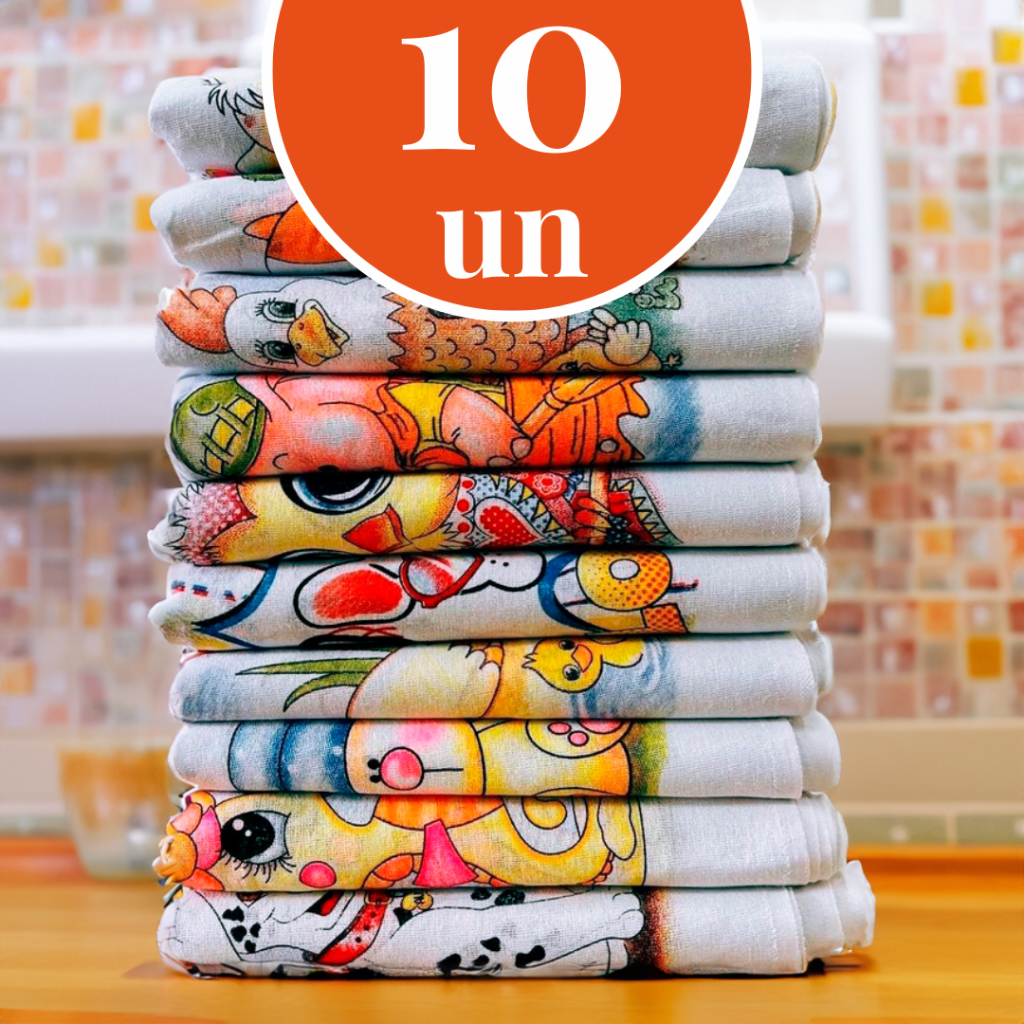Kit 10 Pano de Prato ou Pia Estampado - Guardanapo - 100% algodão