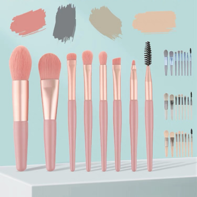 8 Peças / Conjunto Mini Pincéis De Maquiagem Com Cabo De Madeira Fosco / Ferramenta Portátil De Beleza(loli)