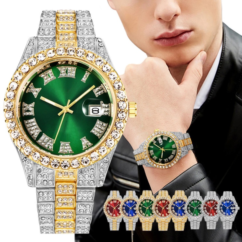 Relógio De Pulso Masculino De Luxo De Aço Inoxidável De Marca Superior Redondo Hip Hop À Prova D'água Namorado Presente