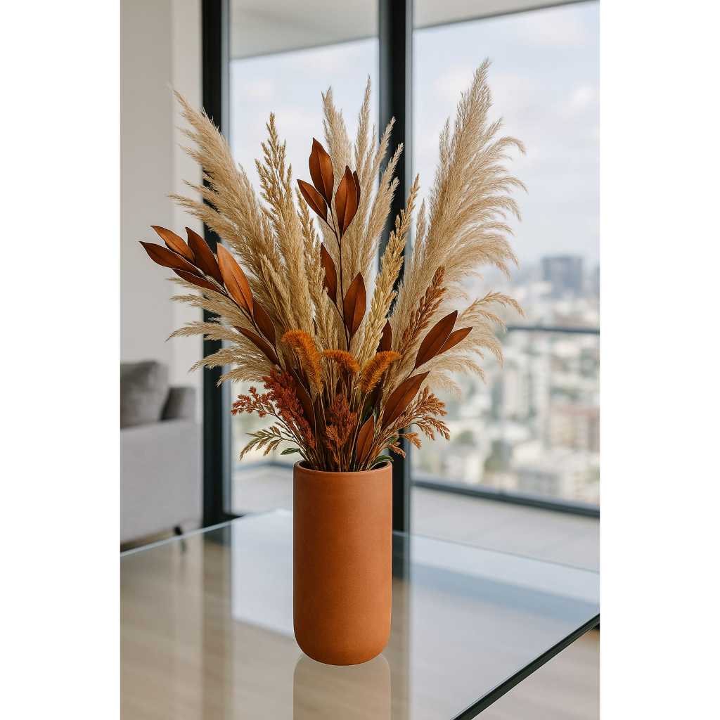 Arranjo Buque com Flores desidratadas Minimalista Terracota c/ Capim dos Pampas