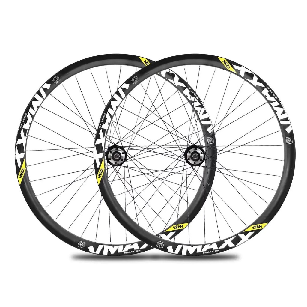 Par 2 Aro Vzan Vmaxx Aro 26 Montado Parede Dupla Reforçado Dh Paredão Para Freio A Disco + Raios Finos Pretos + Cubos Aço 36F Esferado Com Eixo Porca Par Roda Montada