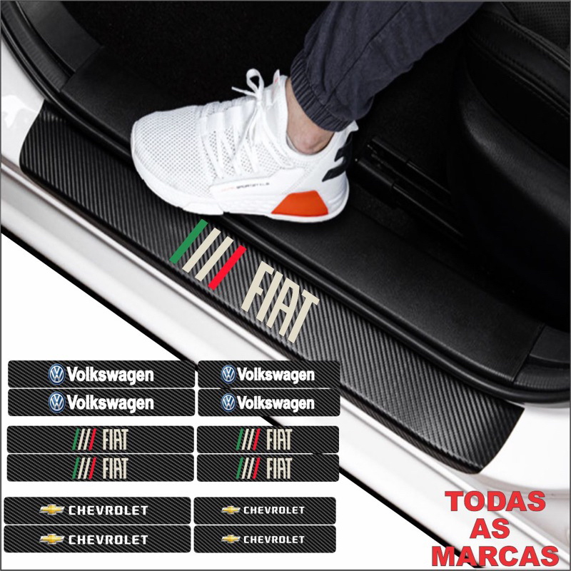 Soleira Automotiva Todas as 25 Marcas de Veículos kit 4 Portas Anti risco Fibra de Carbono