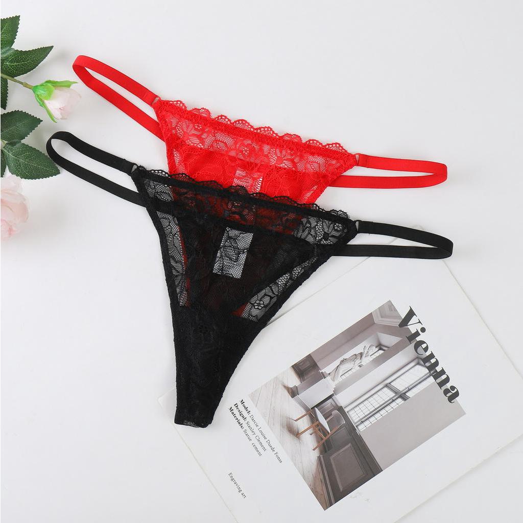 2pcs Roupas Íntimas Femininas Sedosas E Respiráveis Sexy Em Malha De Renda Duas Cores 1 Preto + 1 Vermelho