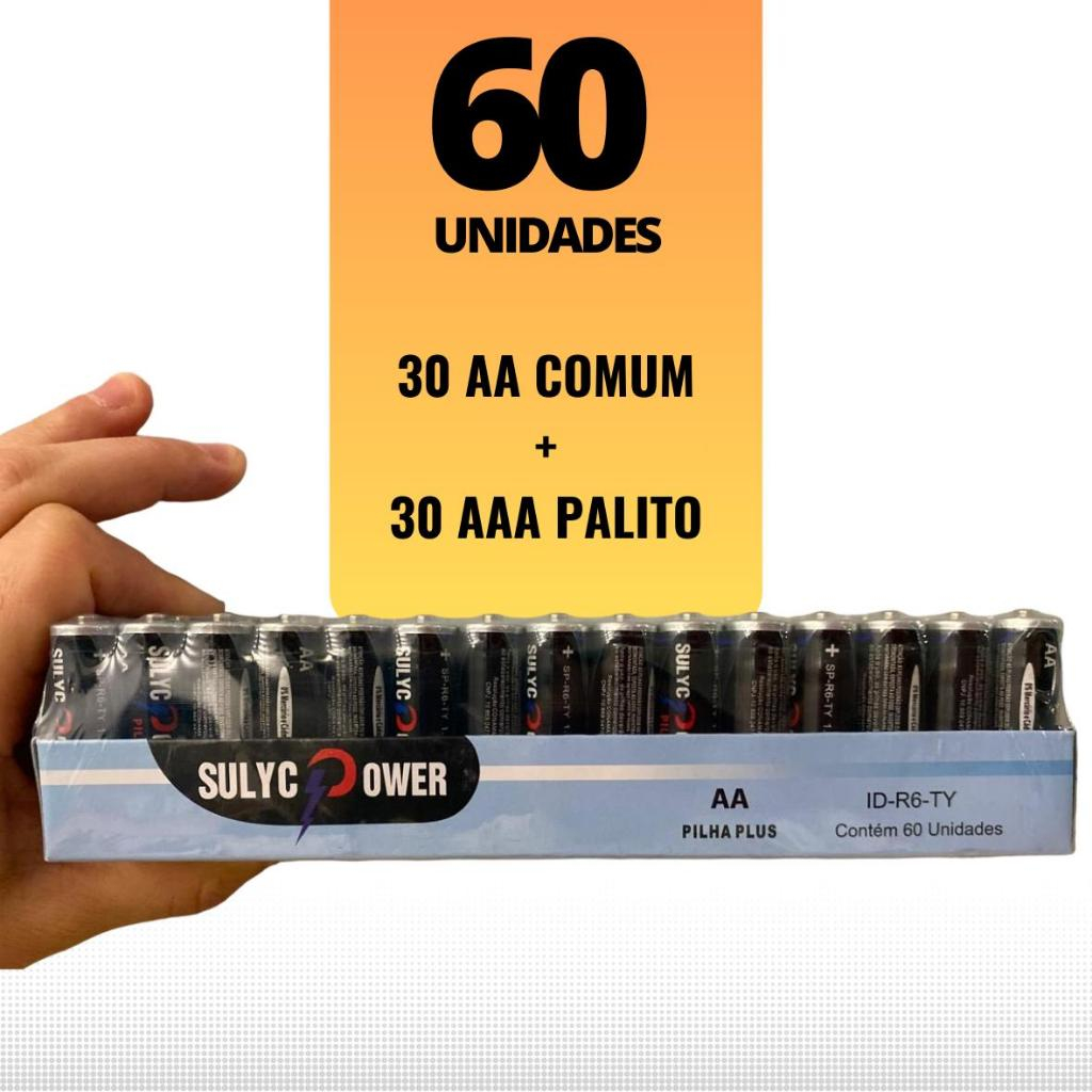 Pilha AAA Palito Caixa Com 60 Unidades AA Pilhas Comum Segma Kit De 40 30 24 Tubo Elgin Kit Zinco +