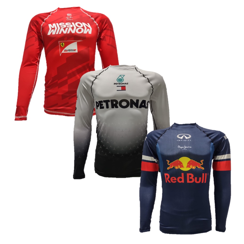 Camisa Segunda Pele Estampas Variadas Proteção Térmica Treino e Exercícios Ferrari - Petronas - Redbull