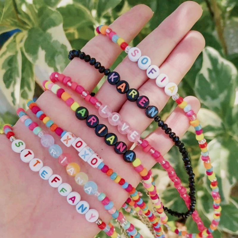 Colares choker coloridos de miçanga com nome personalizado ou pingente com letra inicial personalizada