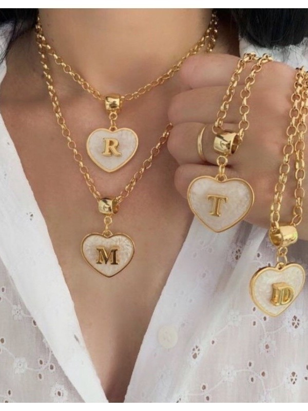 Feminino colares de ouro presente Colar Coração Com Pingente Letra Inicial do Nome Super Tendência