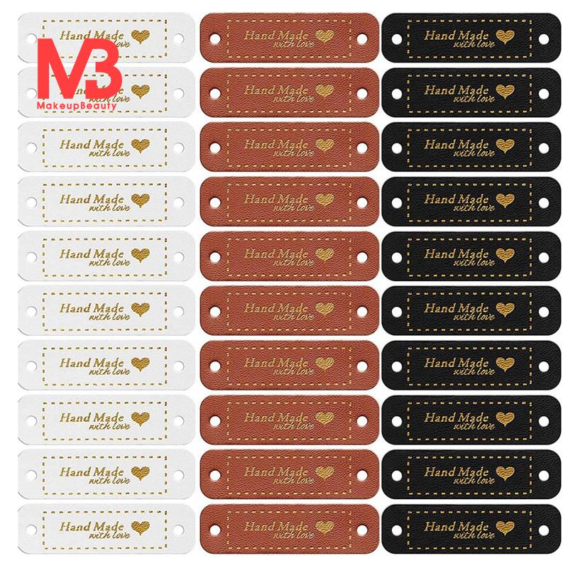 60Pcs Etiquetas De Couro De PU Feitas À Mão Costurar Em Embelezamento De Malhas Com Furos Para Artesanato De Bricolagem