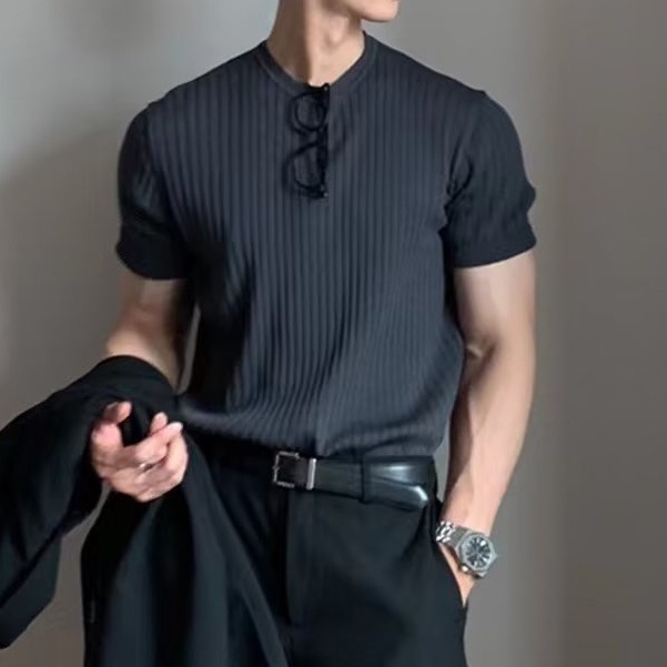Summer New Ice Feeling Cooling Elastic Silk Manga De Gelo Curta Casual Versátil Camiseta Para Homens