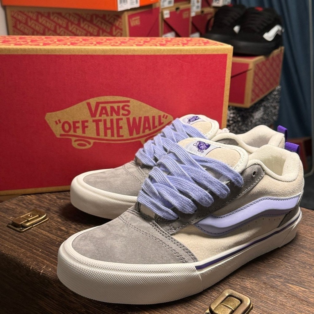 Lançamento do Brasil 2024 novo knuskool cinza claro de camurça roxa sapatos gordos de pão gordo língua grossa sapatos casuais de tênis americano masculino e feminino RX0Q