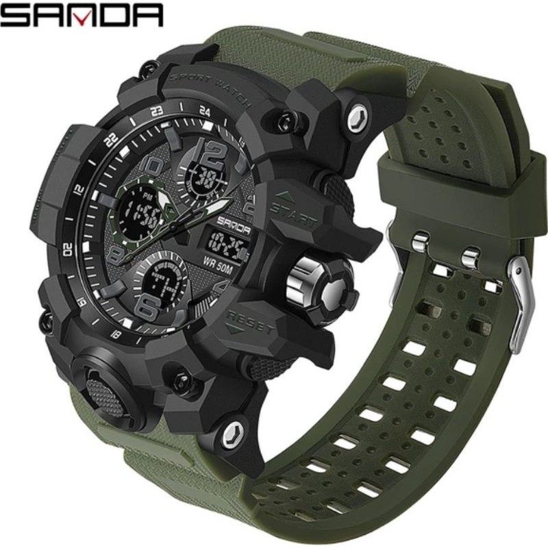 SANDA Top Luxury Men's Quartz À Prova D'água S-Shock Esporte Militar Relógio De Pulso Luminoso De Dupla Exposição