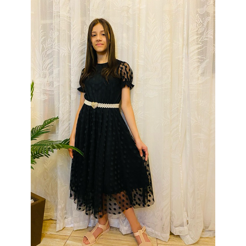 vestido infantil /juvenil em tule Poa rodado godê moda Evangélica