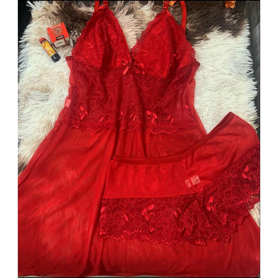 Camisola Tule transparente com renda sensual ViDa lingerie sem bojo com calcinha fio dental sexy ATACADO promoção