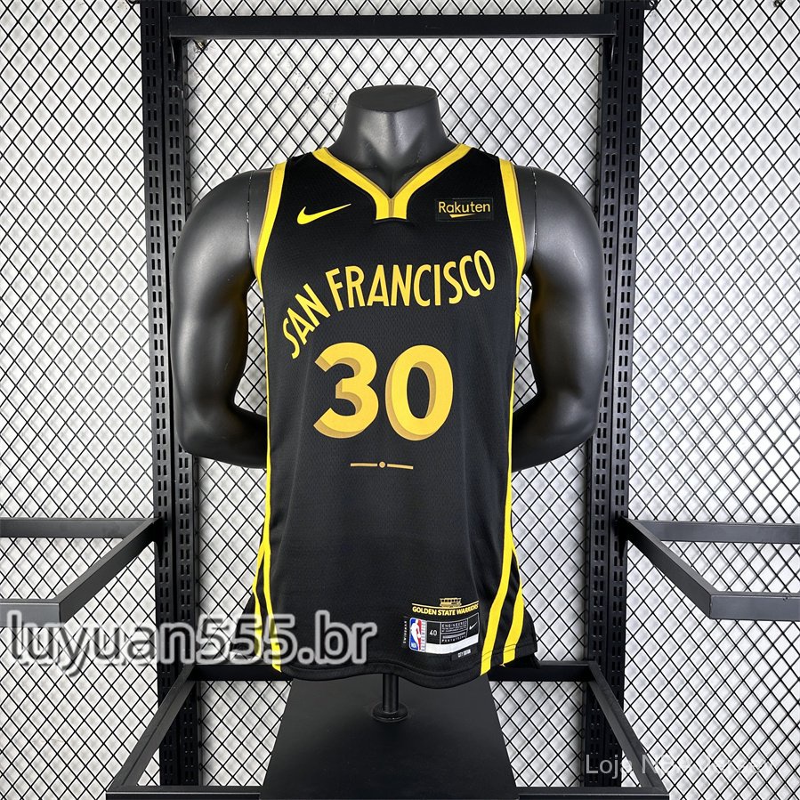 Hot Pressed Camisa nba Golden State Warriors Camiseta #30 Stephen Curry 2024 Black City Edition Sponsorship logo De Basquete jerseys