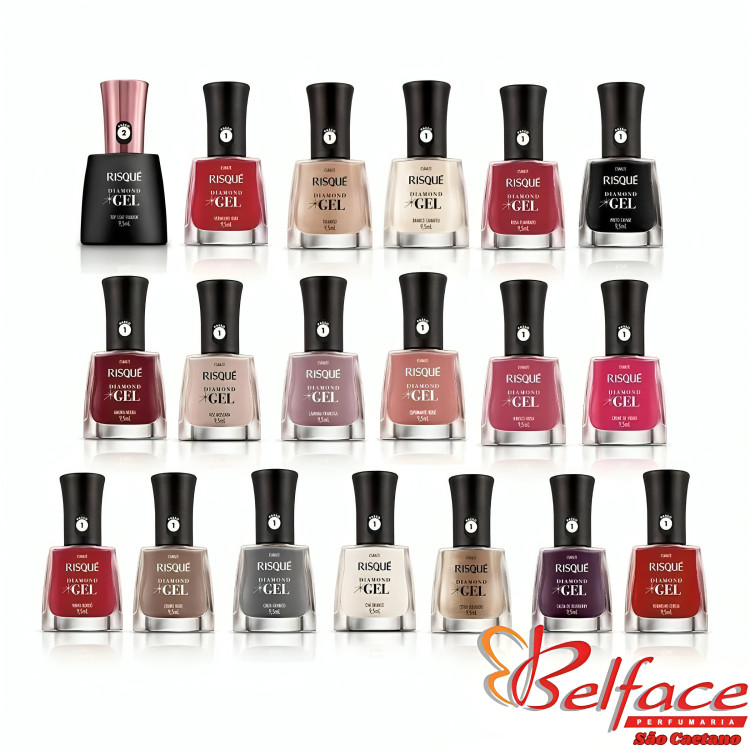 Kit 11 Esmaltes Diamond Gel + 1 Top Coat Risqué Hipoalergênico - Cores Favoritas