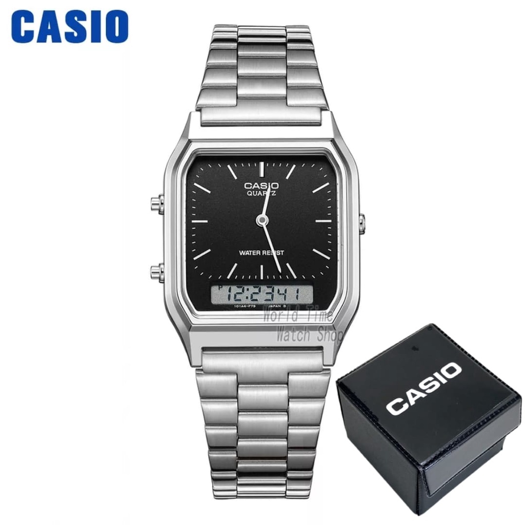 Relogio Casio Vintage AQ230 Á Prova D'água Feminino e Masculino Casio Relógio Top Marca de Luxo Dupla Exibição Primeira Linha