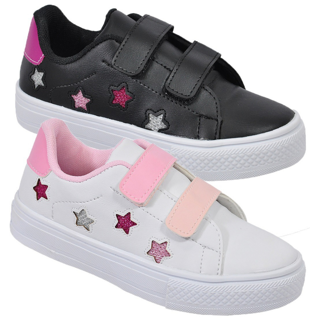 Kit 2 Tênis Infantil Feminino Casual Escolar Passeio Inverno/Verão Estrela Brilho Glitter