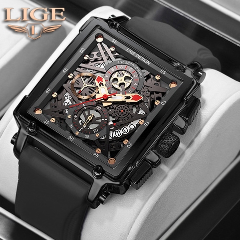 LIGE Relógio de negócios ao ar livre original masculino esportes à prova dwaterproof água luminosa relógio de quartzo silicone água cronógrafo relógios + caixa