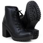Bota Cano Curto Feminina Coturno Salto Baixo Tratorado Preto