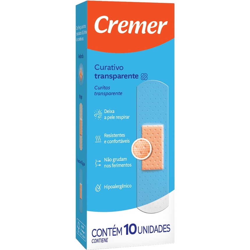 Curativo tipo Band Aid Cremer com 10 Unidades na Cor TRANSPARENTE Deixa a pele respirar Resistentes e confortáveis Não gruda no ferimento Hipoalergênico