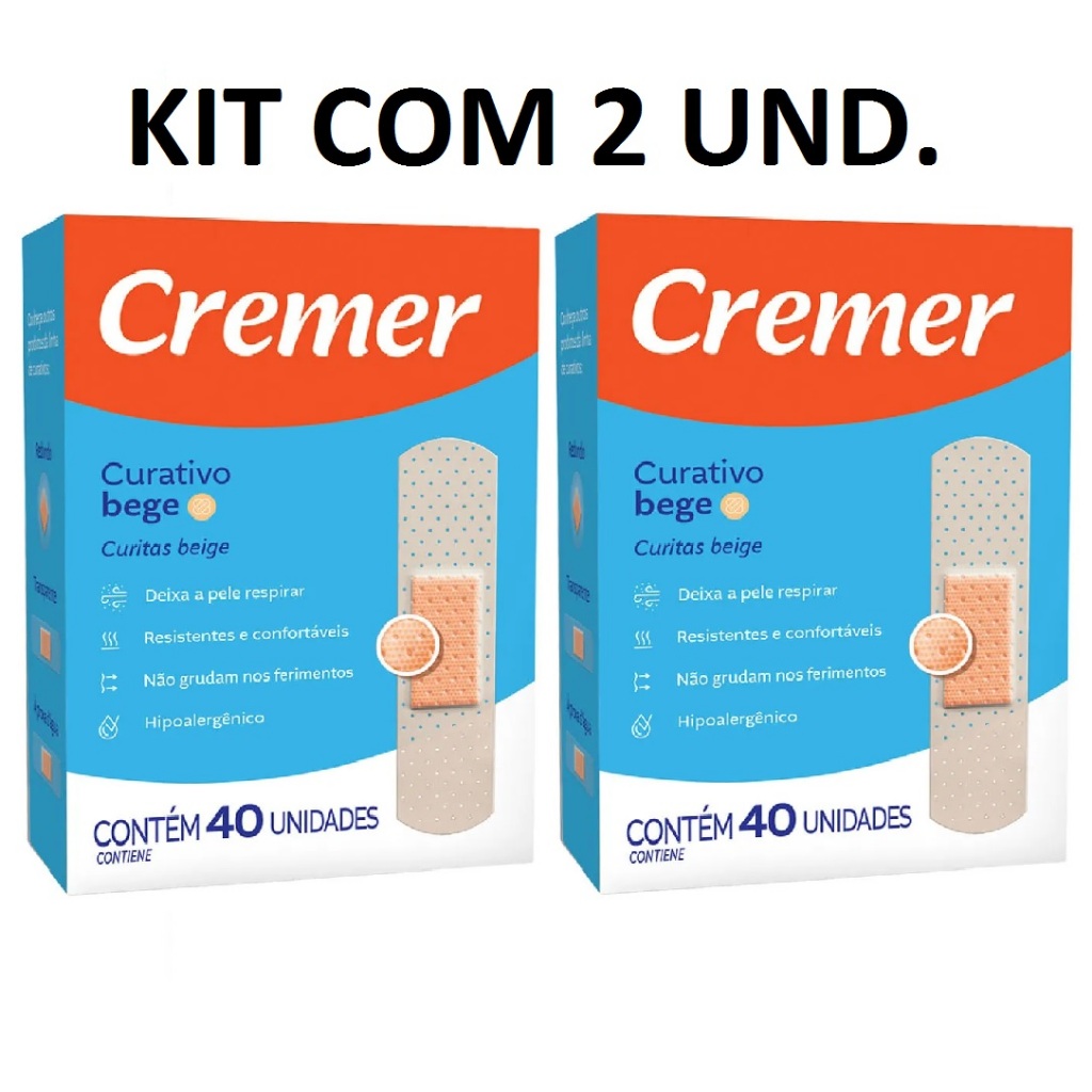 KIT COM 2 Curativo Cremer Tradicional Bege 40 Unidades Tipo Band-aid