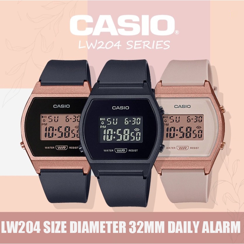 Relógio Digital Cassio feminino Masculino Standard Rose Gold, Preto Prata LW-204 Vintage, Retrô elegante